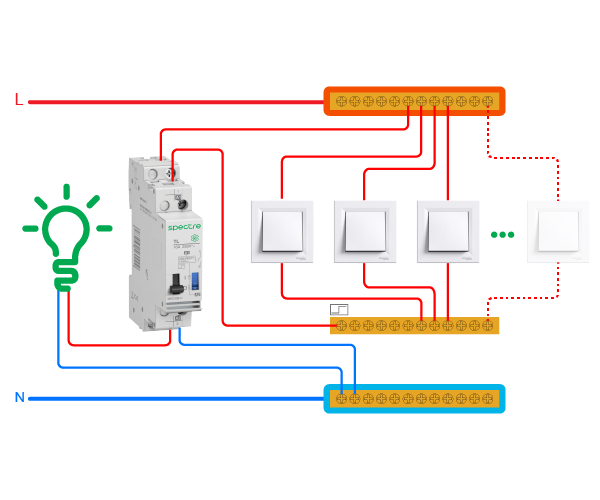 کاربرد رلههای ایمپالسی (ضربهای) تنها برای کنترل روشنایی نیست. بلکه میتوان از آنها میتوان برای کنترل سایر مصرفکنندهها مانند فنها، پمپها یا تجهیزات صنعتی سبک نیز استفاده کرد، بهویژه زمانی که کنترل چندنقطهای مورد نیاز است و عملکرد روشن/خاموش کافی است.