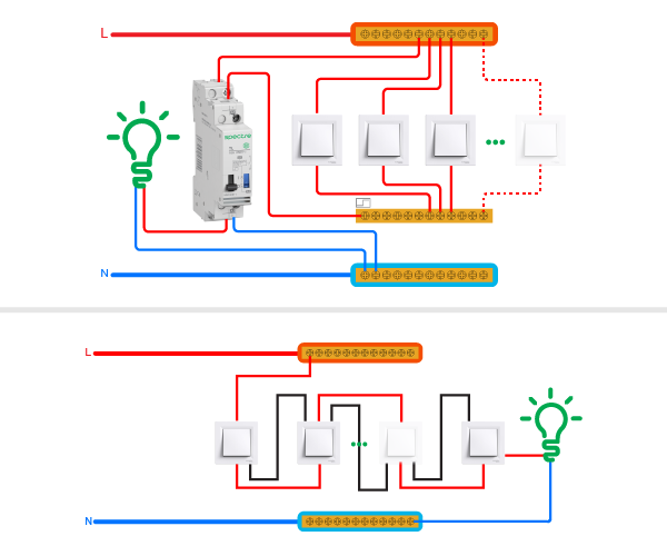 با استفاده از یک رله ایمپالسی (ضربهای) بهجای چند کلید سنتی تبدیل و صلیبی، میتوان طراحی مدار را سادهتر و جمعوجورتر کرد. این امر موجب کاهش حجم تجهیزات کنترلی در تابلو برق و همچنین سادهتر شدن سیمکشی و صرفهجویی قابل ملاحظه در میزان سیم مورد نیاز میشود.
