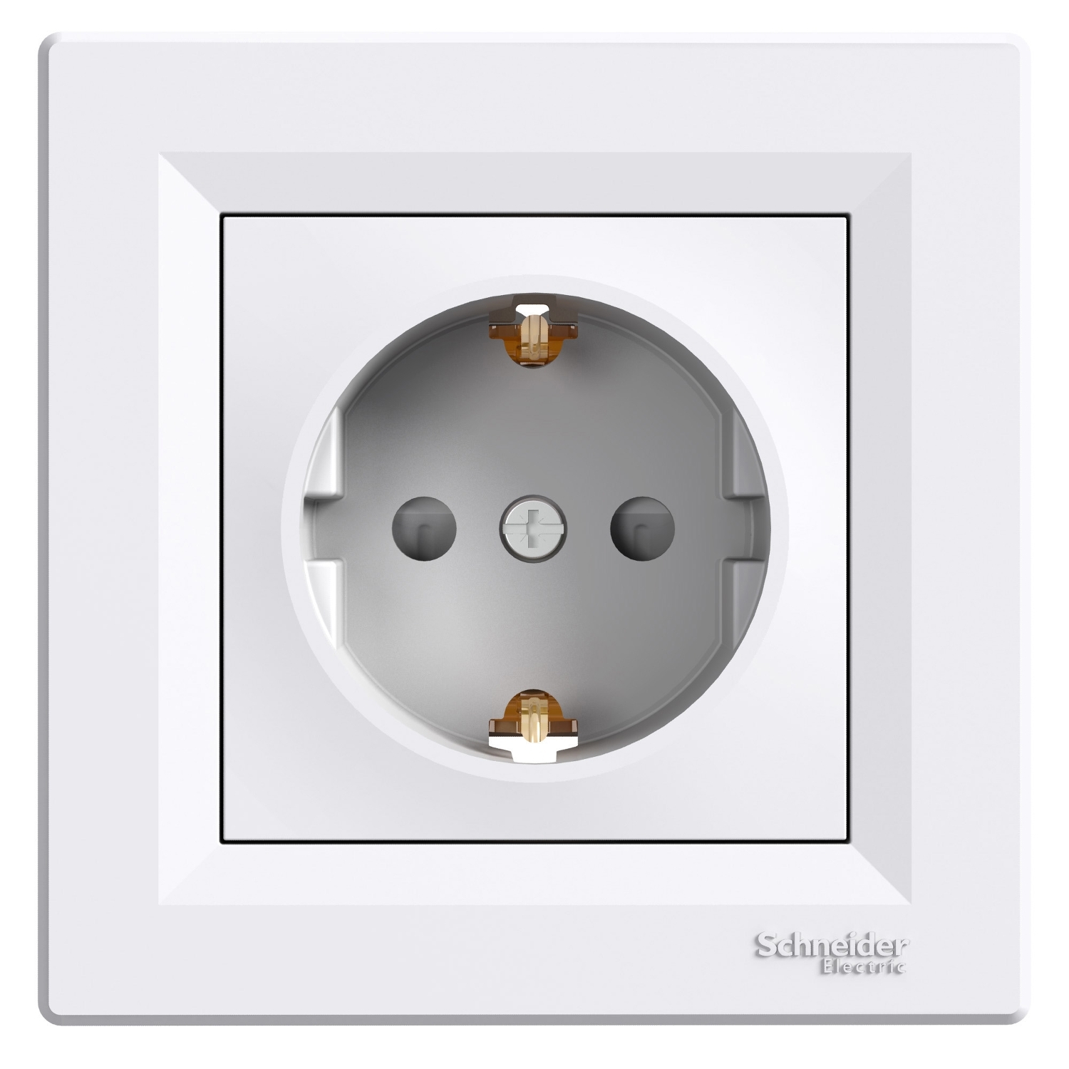 Asfora - پریز تکی با ارت جانبی - 16A - محافظ کودک - سفید