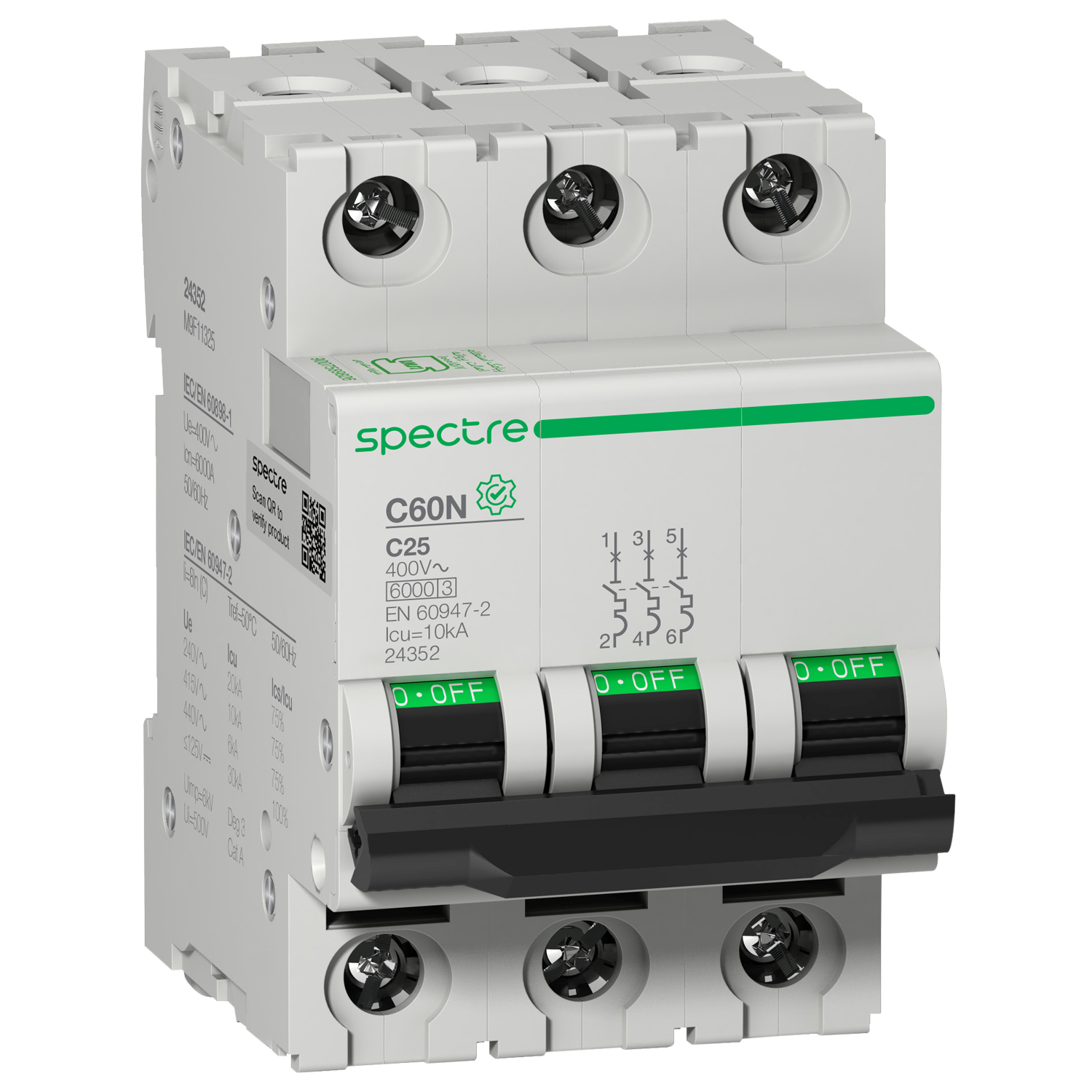 6 kA Icu 440 V AC 50/60 Hz between phases EN/IEC 60947-2