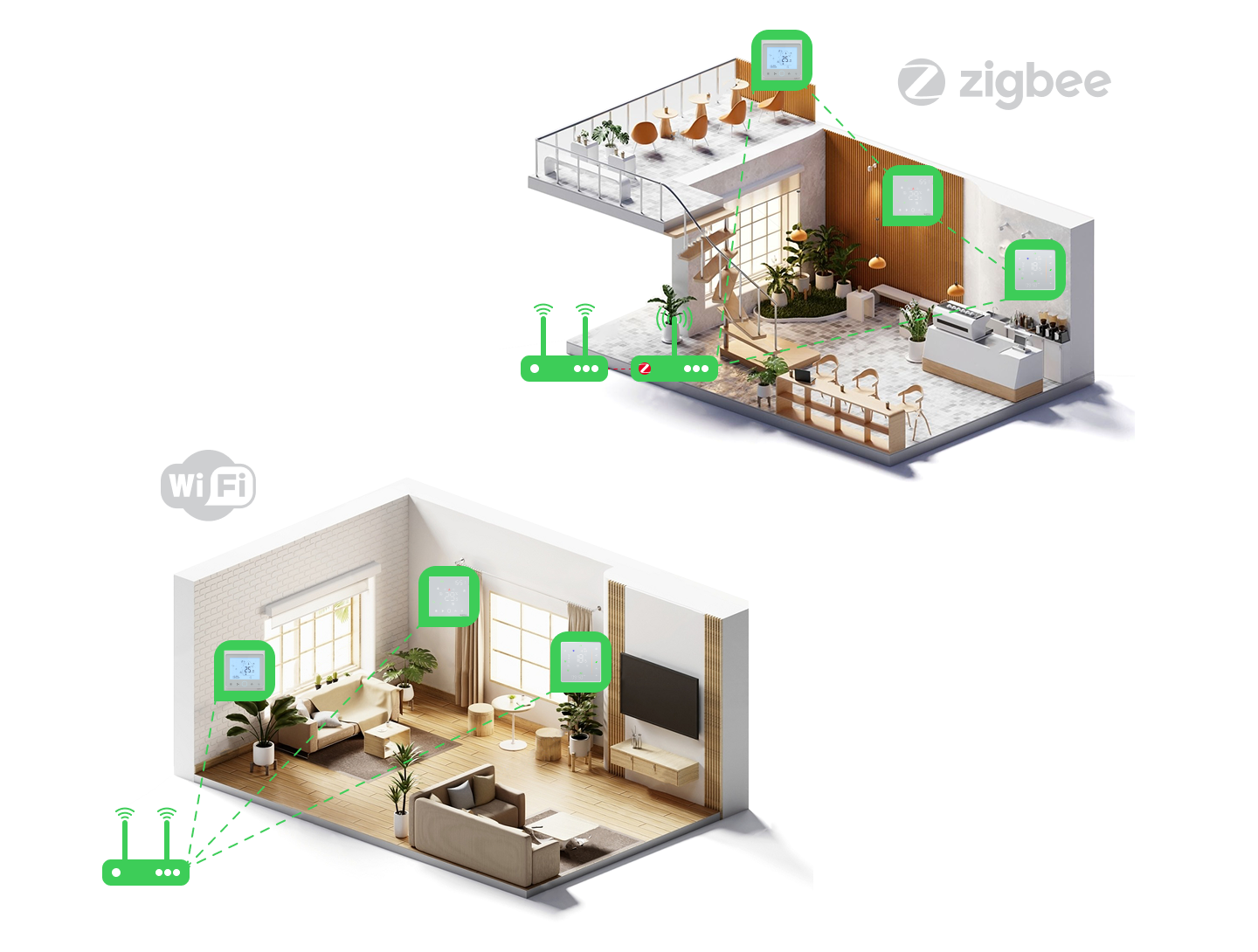 قابل ارائه با دو پروتکل WiFi و Zigbee: